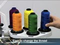 Система автоматической заправки верхней нити. Также машина поддерживает последовательное натяжение и устраняет запутывание нити.;