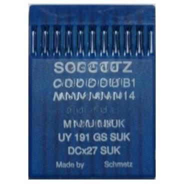 Schmetz DCx27 SUK (Bx27 SUK) № 100 Модель: 03:36FB1 DCx27 SUK (Bx27 SUK; MY1023 SUK; UY 191 GS SUK) № 100 Краткое описание: Игла предназначенная для оверлоков. Среднее шарообразное острие. Легко раздвигает нити ткани и петель и за счет этого проходит между нитями, исключая при этом повреждение материала. Применение: грубый трикотаж, джинсовая ткань. Длина иглы от начала игольного ушка до основания: 28,6 мм. Толщина колбы: 2,02 мм. Толщина иглы (диаметр иглы): 1 мм. Количество в упаковке: 10 шт. Производитель: Schmetz (Германия).